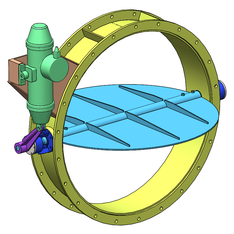Клапани газоходів виготовляються в круглому і прямокутному виконанні. Клапани призначені для регулювання газових потоків, вимкнення апаратів газоочищення на період ремонту або технічного обслуговування, за своєю функцією поділяються на відсічні, аварійні, зворотні та клапани підсмоктування повітря. Привід клапанів здійснюється за допомогою МЕО, ПВМ. 1М. Потужність приводу вибирається залежно від розміру клапана. За бажанням замовника можливе оснащення ручним або пневматичним приводом.